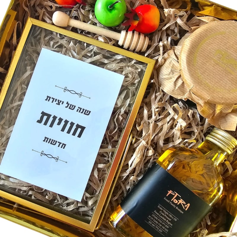 מסגרת תמונה+גלויה למסגרת פרחי גבסנית מיובש לקישוט קישוטי ראש השנה דבשון מקל עץ דבש פתורה 150 גרם שמן זית כתית מעולה בצורת בקבוק ויסקי 200 מ"ל